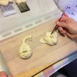 Egyenlőre nagyon szép fehér a figurák felülete. Légkeveréses sütőben 75 fokon kb. 5 órája szárítom folyamatosan. Sütőben csak addig szárítom, amíg már biztonságosan pakolhatóak a figurák, a többit a nap majd elvégzi. Nem sietünk sehová.